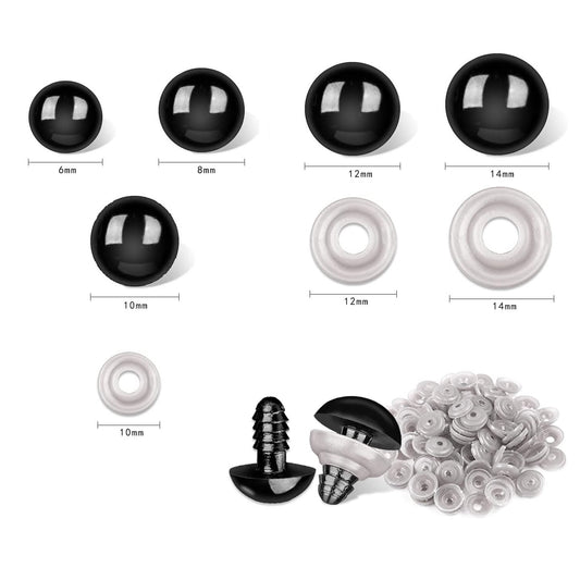 Yeux de sécurité, noir, 6 à 24 mm - Paquet de 100 yeux et 100 attaches