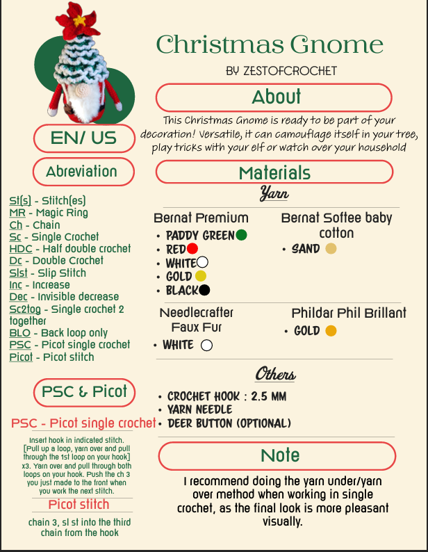 Droit d’auteur © 2023. Le contenu ne doit EN AUCUN CAS être copié, reproduit, changé, publié ou distribué. Vous pouvez vendre le produit fini fait avec ce patron, en donnant tous les crédits à ZestOfCrochet.